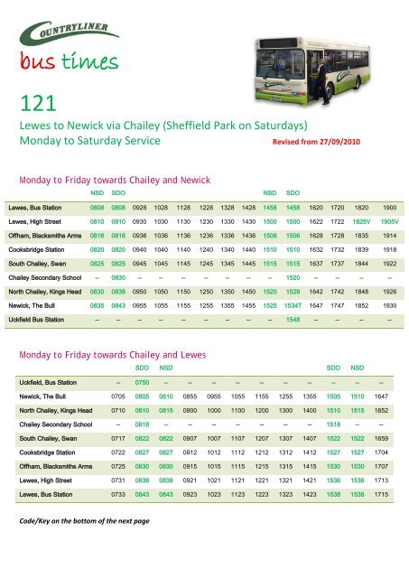 121 Bus Timetable (Lewes Uckfield) Chailey School