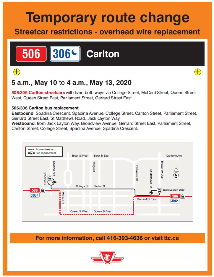 TTC Customer Service on X: “506 Carlton Temporary route change