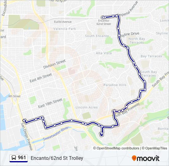 Route 961: 24th St Transit Center Encanto Trolley | Bus Schedule