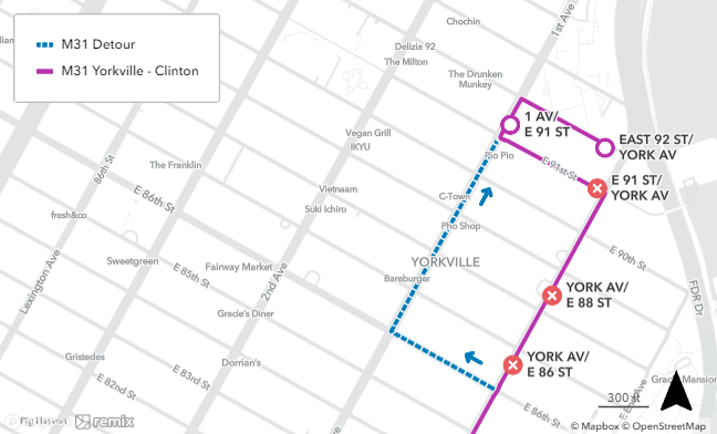 NYCT Bus on X: “While detoured, M31 will not stop on York Ave