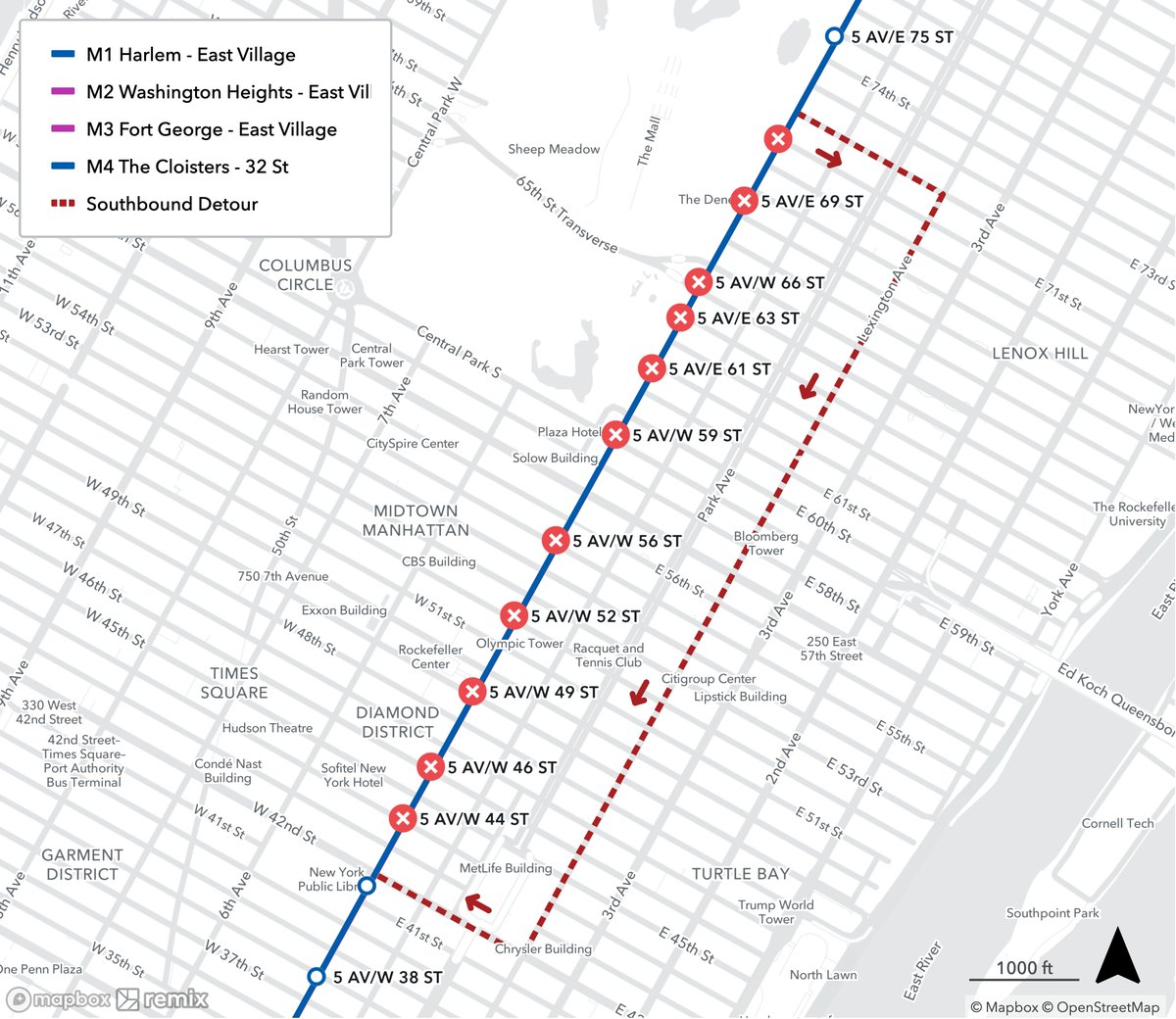 NYCT Bus on X: “Southbound M1, M2, M3, and M4 buses will operate