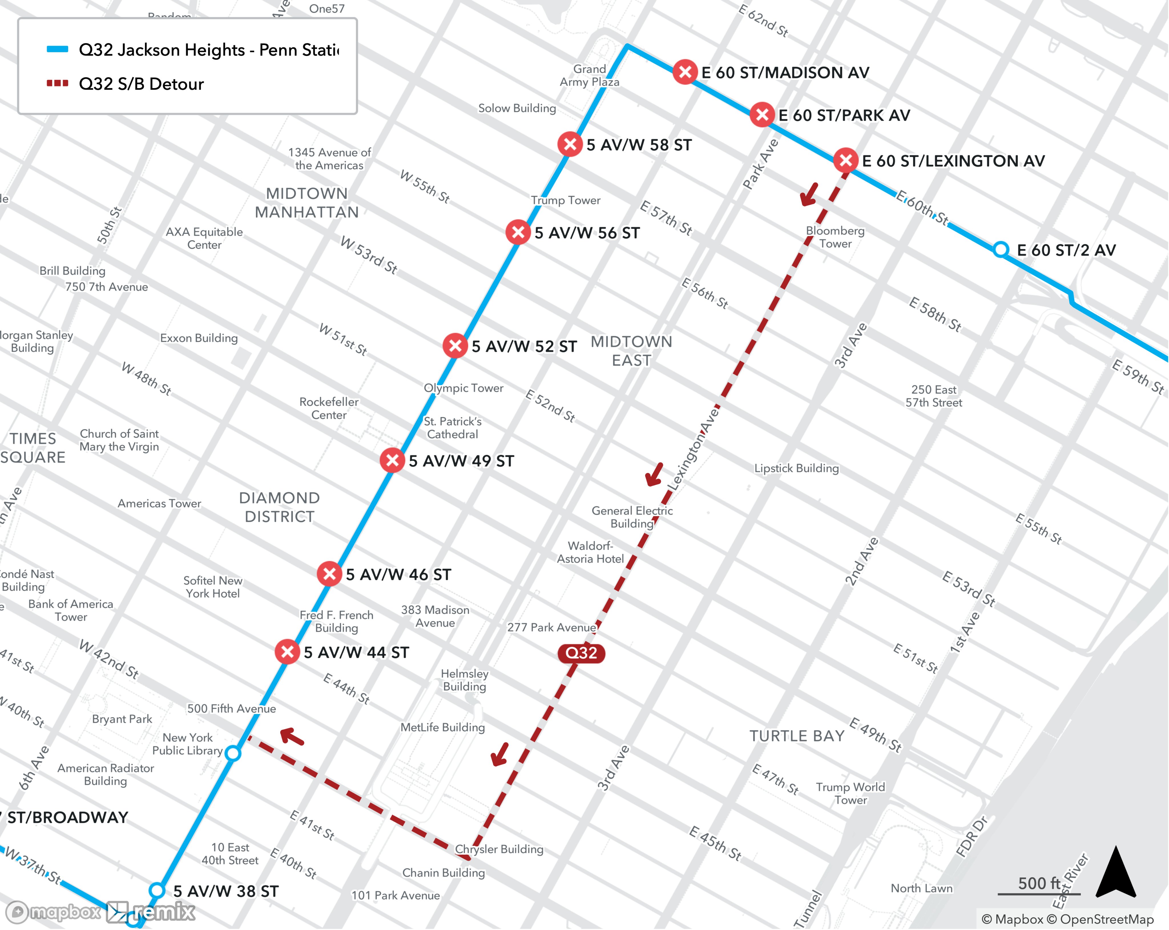 NYCT Bus on X: “Southbound Q32 buses will operate along Lexington